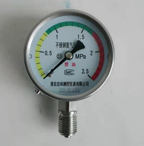 壓力表在出廠前都是經(jīng)過生產(chǎn)廠家檢測合格后出廠的,由于壓力表作為現(xiàn)場壓力值測量顯示的壓力儀表作為壓力檢測的一部分,一般在安裝前應(yīng)當進行檢定合格后再投入使用,并用標簽注明下次檢定日期貼在壓力表表殼上面,并且壓力表檢定后加裝鉛封以保證沒有遭到人為干預(yù)正常使用。通常為了保證壓力表讀數(shù)顯示清晰指示,在刻度盤上劃出指示工作壓力的黃綠紅線或者刻度標示。