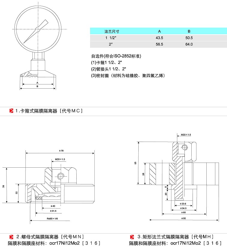 | MC | 衛(wèi)生型卡盤連接(-0.1~0~2.5MPa) | |||||